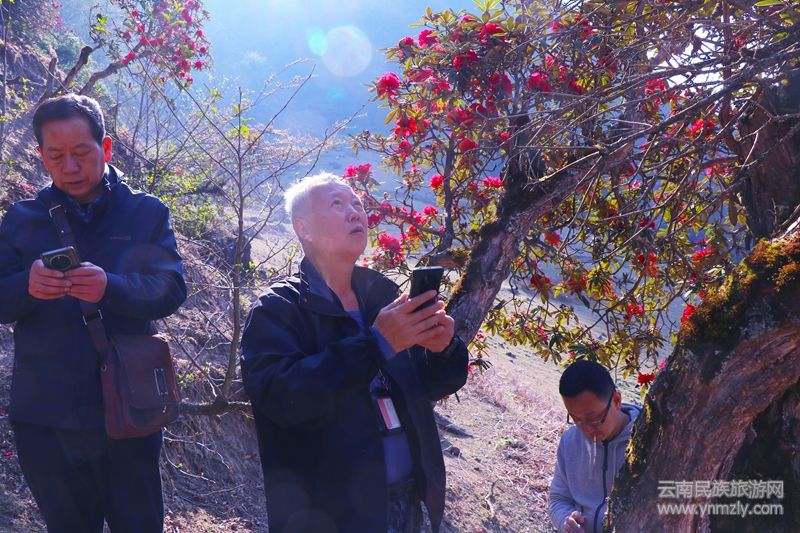以前,我們數(shù)次光臨此地,而關(guān)注的焦點在于杜鵑花的分布情況等,此次考察,以植物學(xué)研究者眼光看待問題,故而側(cè)重于樹齡及生態(tài)環(huán)境考究,且據(jù)專家介紹,杜鵑花旁的榿木樹等,都是杜鵑花共生環(huán)境必不可少的植物。此次考察,完全刷新了此前我們對于滇灘杜鵑花的認(rèn)識,時值我正在為滇灘鎮(zhèn)作歌《滇灘賦》,原來歌詞為“滿山杜鵑紅”,考察完畢,欣然將歌詞改為“百年杜鵑紅”,甚至有人建議改為“千年杜鵑紅”,歌詞內(nèi)涵完全改變了。專家還提出將滇灘打造成“杜鵑花之鄉(xiāng)”的建議。
