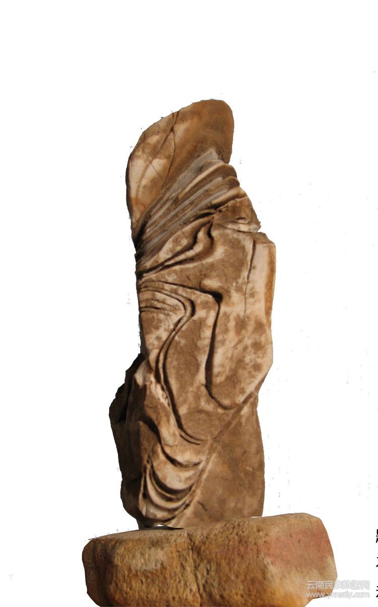 昭君出塞征程中,風雨、風沙什么的,可是司空見慣的喲!看昭君這般裝束,顯然是深思熟慮后有備而去的。正是這一段非同尋常的風雨兼程,造就、沉淀了昭君出塞的佳話。古往今來,反映昭君出塞佳話的詩歌達700余首,與之有關的小說、民間故事有近40種。但,以天成之形在石上定格的昭君出塞形象,卻是不可能批量出籠的。
