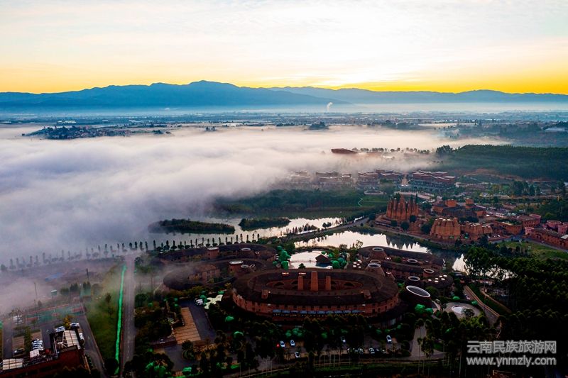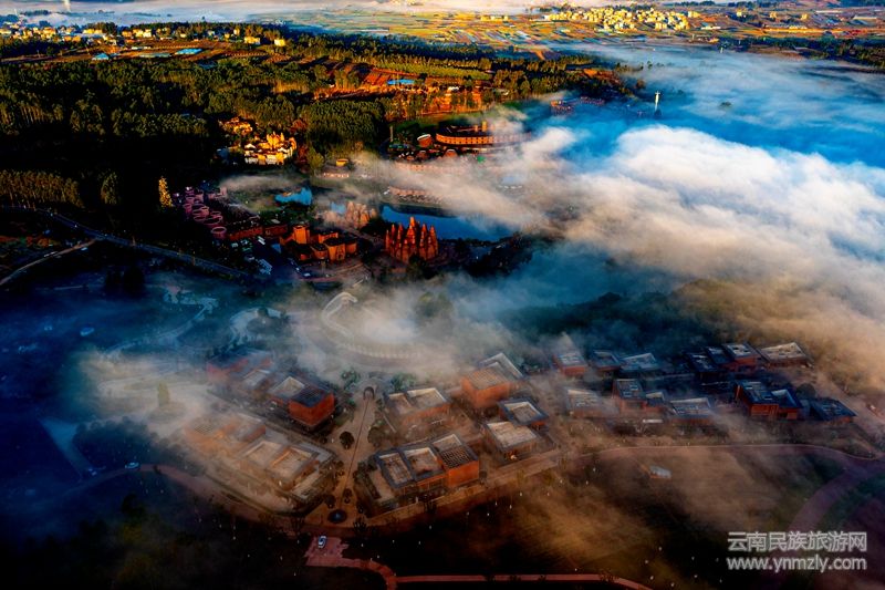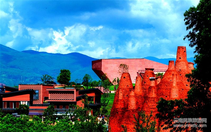 隨處可見的紅磚經(jīng)過藝術(shù)家的堆砌,就成了鑲嵌在彌勒這片土地上特色的藝術(shù)品。萬花筒、印章坊、半朵云、牛哆啰,隨心而成的紅磚建筑,在綠樹流水之間生根發(fā)芽,散發(fā)著獨特的魅力,在云聚云散間吸引著無數(shù)的人來來去去。