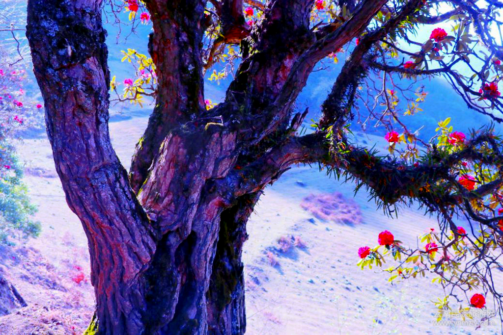 八彎埡口是一個東高西低的圓形山包,基本由喀斯特地貌特征明顯的石塊、石筍堆積而成,又名冒地坡,幾十棵馬纓古杜鵑與灌木叢、榿木樹相伴共生。每逢春暖花開時,漫山遍野的古杜鵑火紅耀眼。據(jù)專家考證,八彎埡口古杜鵑林,樹齡在500年左右。