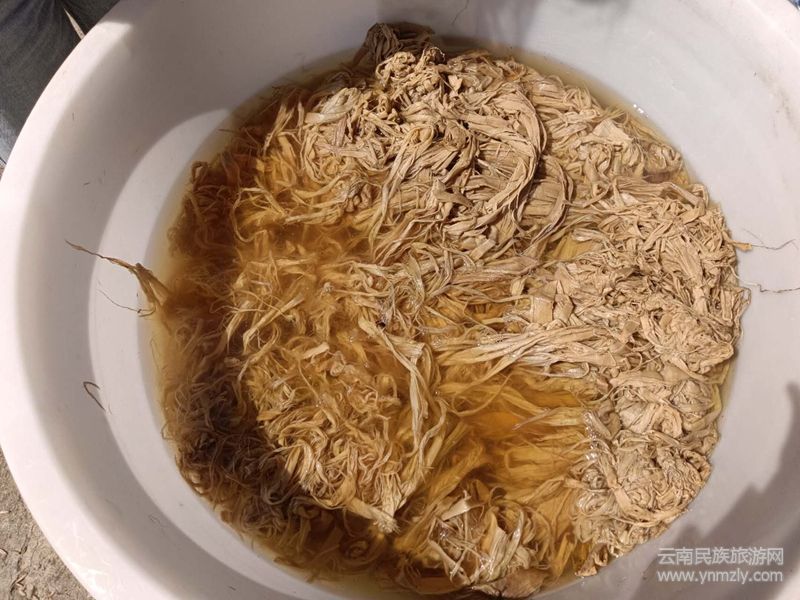 (2)泡構皮。將買來的干構皮放在流淌的清水中浸泡一夜使之韌軟。