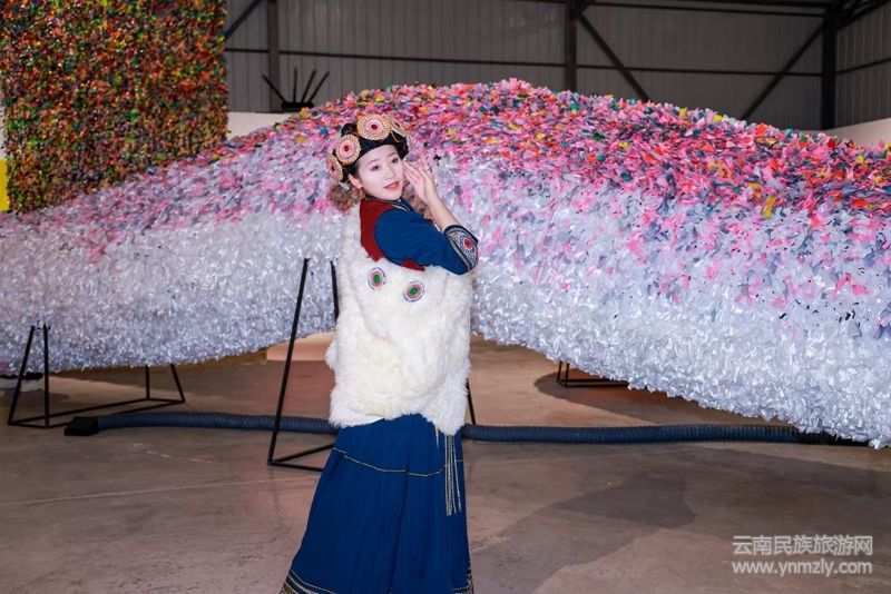學(xué)術(shù)支持代表、著名學(xué)者夏可君教授隨后發(fā)言。他提到,古原的綜合藝術(shù)具有極其重要的文旅價(jià)值。古原將地方性與民族性的文化歷史記憶、超越維度的莊嚴(yán)儀式、節(jié)日的熱烈氣氛、當(dāng)代藝術(shù)的個(gè)人想象力,以及AI技術(shù)的算法,以一種前所未有的創(chuàng)造性方式綜合在一起,充分體現(xiàn)了中國藝術(shù)的創(chuàng)造性原理。特別是在展覽現(xiàn)場,當(dāng)我們目睹龍與蛇的巨型作品時(shí),這些蘊(yùn)含中國文化吉祥符號的花彩作品,其色彩的絢爛與濃烈,深深地震撼了到場的觀眾,必將成為麗江一道新的瑰麗景觀。